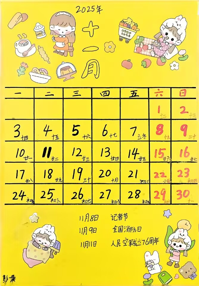 钟灵街小学三年级七班的孩子们,在数学课上,学会了月份的天数、星期的循环和节气的分布。在美术课上,他们拿起画笔、彩纸,将这些知识点变成了一幅幅设计独特的月历卡。有的用数字标注重要节日,有的配上二十四节气的插画,还有的用不同颜色区分工作日与周末,每一张都饱含孩子们对时间的理解与想象。