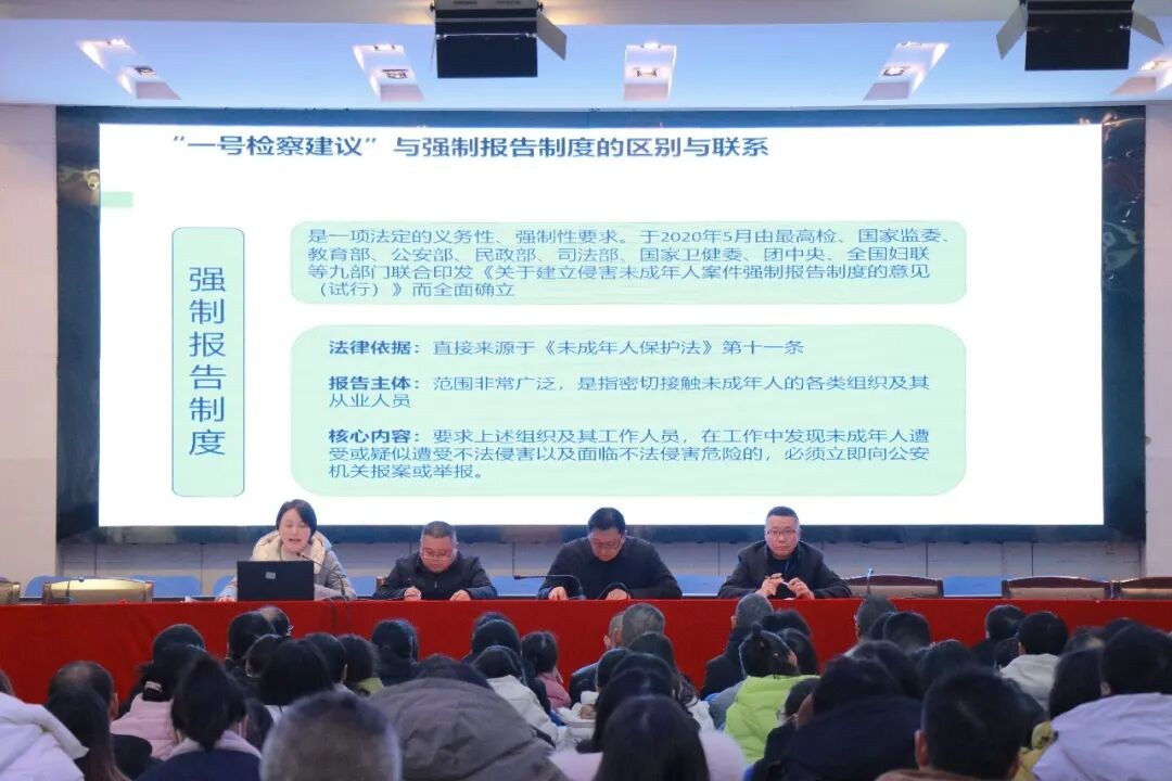 在政策解读环节,传达学习“一号检察建议”与强制报告制度的核心要求,明确全体参会人员的法定责任与履职规范 。详细拆解强制报告制度的触发场景、上报流程与纪律要求,强调无论身处教学岗位还是后勤岗位,一旦发现侵害未成年人的线索或苗头,必须第一时间按规定上报,坚决杜绝迟报、漏报、瞒报情况,构建“全员参与、全域覆盖”的未成年人保护闭环体系。同时结合《中华人民共和国未成年人保护法》相关要求,引导全体人员深刻认识“一号检察建议”的刚性约束,将预防性侵、校园欺凌等保护举措落实到日常管理与服务中。