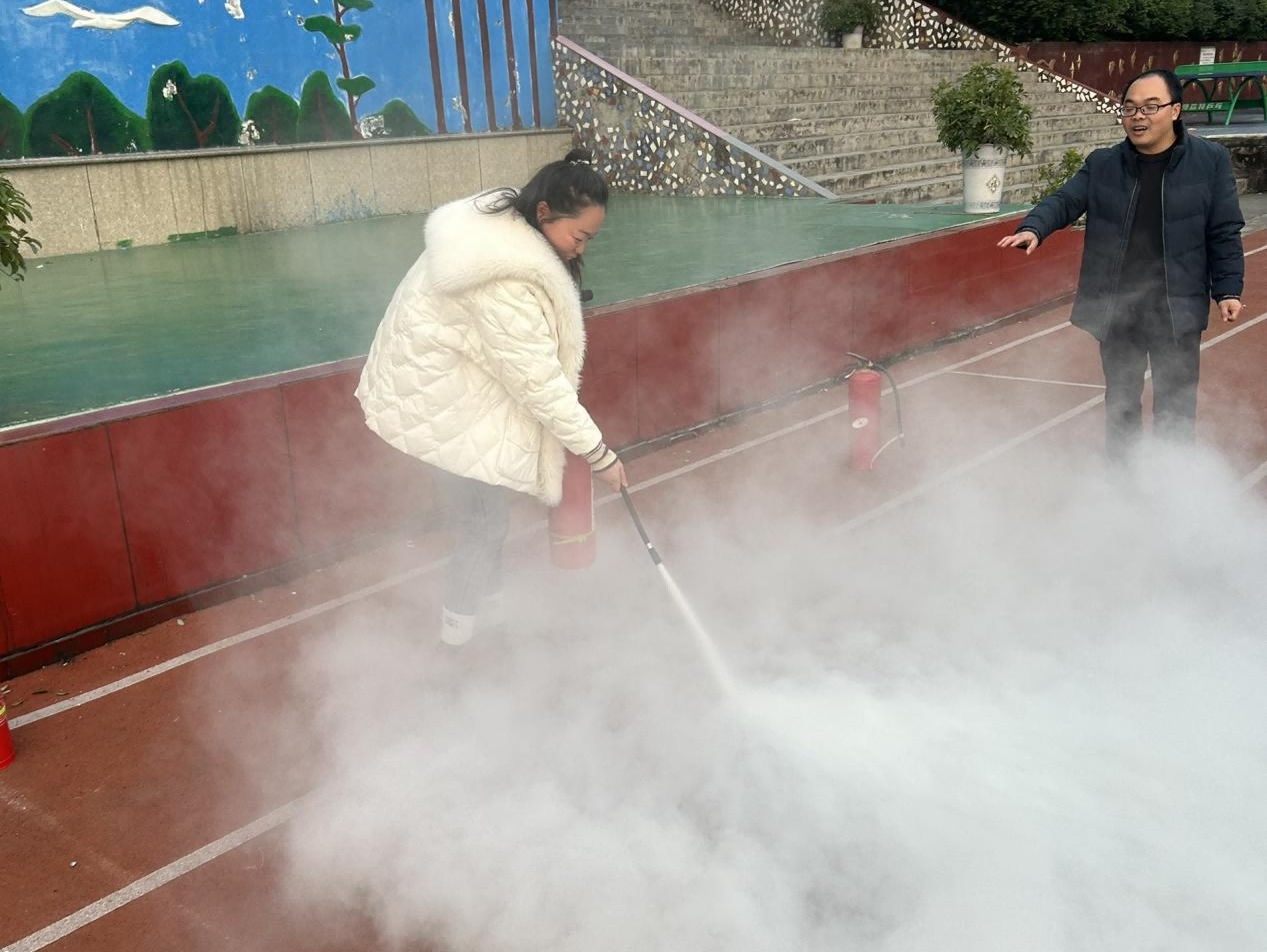 逃生演练结束后,进入消防安全实操培训环节。学校安保办负责人现场讲解灭火器“提、拔、握、压”的核心使用方法,结合校园火灾常见场景,拆解操作要点和安全注意事项。宿管员作为校园安全一线力量,率先进行实践操作练习,通过反复演练灭火动作,确保熟练掌握实操技能。随后,住校学生自愿参与尝试,在老师的全程看护下,亲手操作灭火器扑灭模拟火源,将理论知识转化为实战能力。