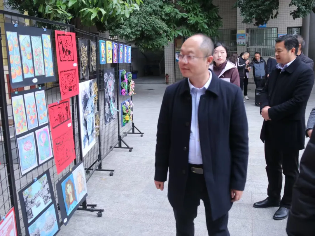 随后,大家走进西充县第一实验小学。一入校,浓郁的文化气息便扑面而来,每一处景致皆藏巧思,每一个角落尽绽光彩。校门口,一副笔力遒劲的对联映入眼帘,既彰显学校的教育初心,又尽显大气磅礴的育人格局,为校园平添厚重底蕴。漫步校园,精心打造的文化墙如画卷徐徐展开,从办学历程到核心理念,从科学知识普及到行为规范引导,让学生在耳濡目染中汲取成长力量,于潜移默化中涵养品格修为。艺术作品展示区错落有致,成为校园里一道亮丽风景线。