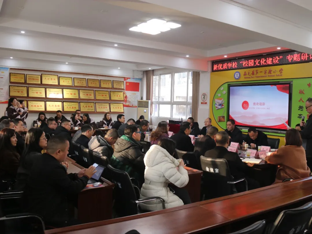 西充县第一实验小学党委副书记、校长杨禹致辞,阐述学校以文化建设为根脉、赋能内涵发展的办学初心。