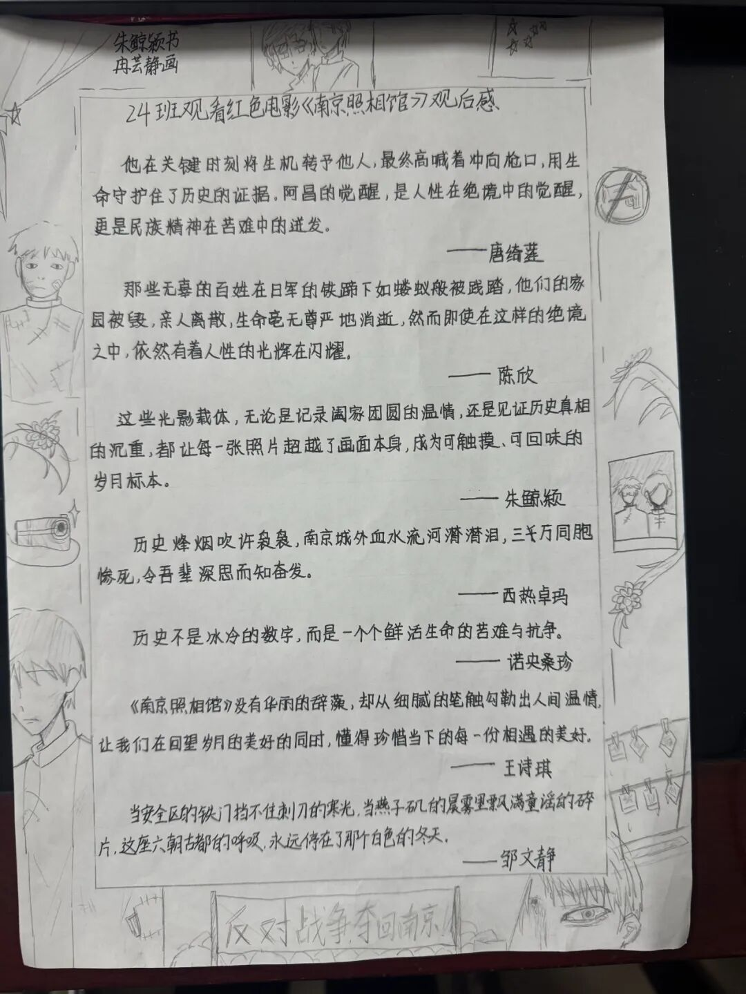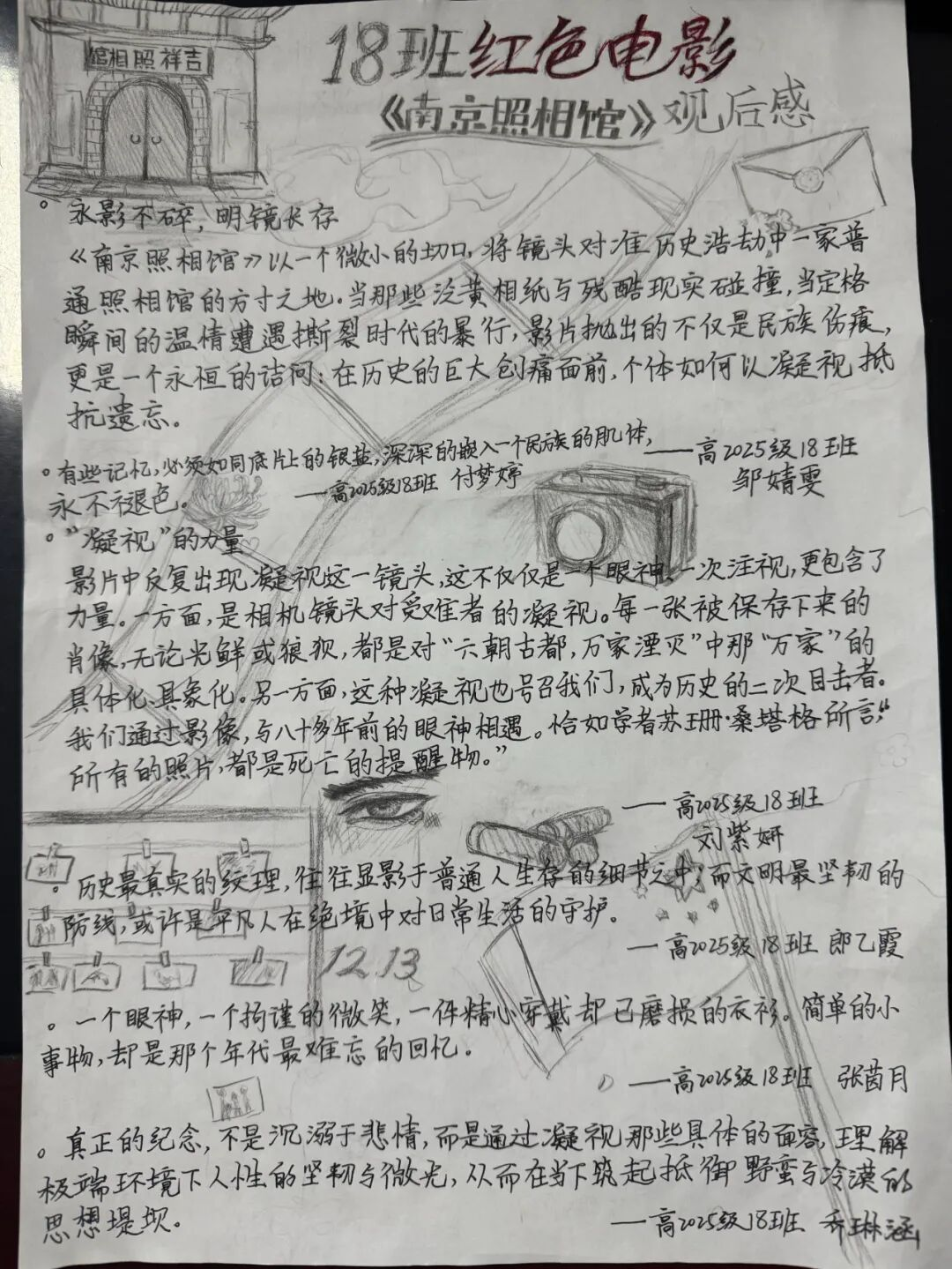活动通知一经发布,便得到了各班级的积极响应,同学们踊跃参与,用心撰写感悟。有的同学结合历史课堂所学,探讨“一二·九”运动与抗日战争的历史关联,抒发对民族精神的理解;有的同学联系自身实际,讲述如何在新时代传承爱国精神,立志成为有理想、有本领、有担当的青年;还有的同学用细腻的笔触,描绘影片中令自己印象深刻的场景,表达对革命先辈的崇敬之情。