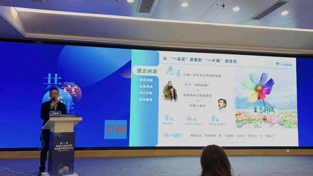 作为参会代表与分享嘉宾,王泽平书记在初中校长研讨分会场,向全场教育同仁深度阐释了“七色花海”课程体系的构建逻辑与实践路径。他提出的“让每一粒种子都有绽放的舞台”教育理念,扎根孔子“因材施教”传统智慧,融合加德纳多元智能理论与积极心理学,直面“培养什么人、怎样培养人、为谁培养人”的时代之问,赢得现场阵阵赞誉。