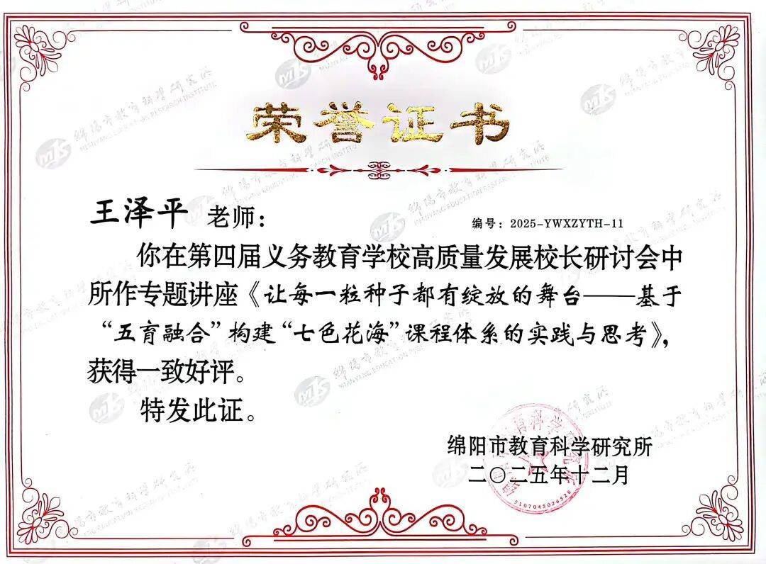 此次在市级校长研讨会的专题分享与双奖殊荣,是对我校课程改革的阶段性肯定,更是未来前行的强劲动力。接下来,学校将继续秉持“让每一朵生命之花灿烂绽放”的育人理念,进一步优化“七色花海”课程结构,细化实施路径,完善“教师—学生—课程”三位一体多元评价体系,让课程更具针对性、实效性与吸引力。
