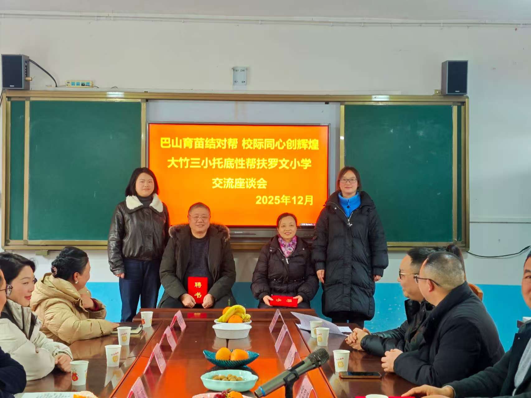 为深入贯彻落实达州市教育托底性帮扶相关政策文件要求,推动城乡教育均衡发展,12月16日至17日,大竹县第三小学党总支书记练友全带领学校行政团队及骨干教师一行,再次赴万源市罗文小学开展以“真情送教促均衡”为主题的结对帮扶活动。活动通过座谈交流、结对拜师、名师送课、物资捐赠等多种形式,搭建校际深度协作互助桥梁,共同促进区域教育高质量发展。