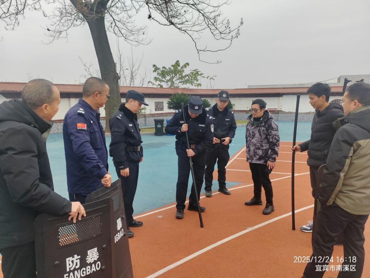接着,民警就防暴器材使用和最小单元成员协同防范知识进行详细讲解。