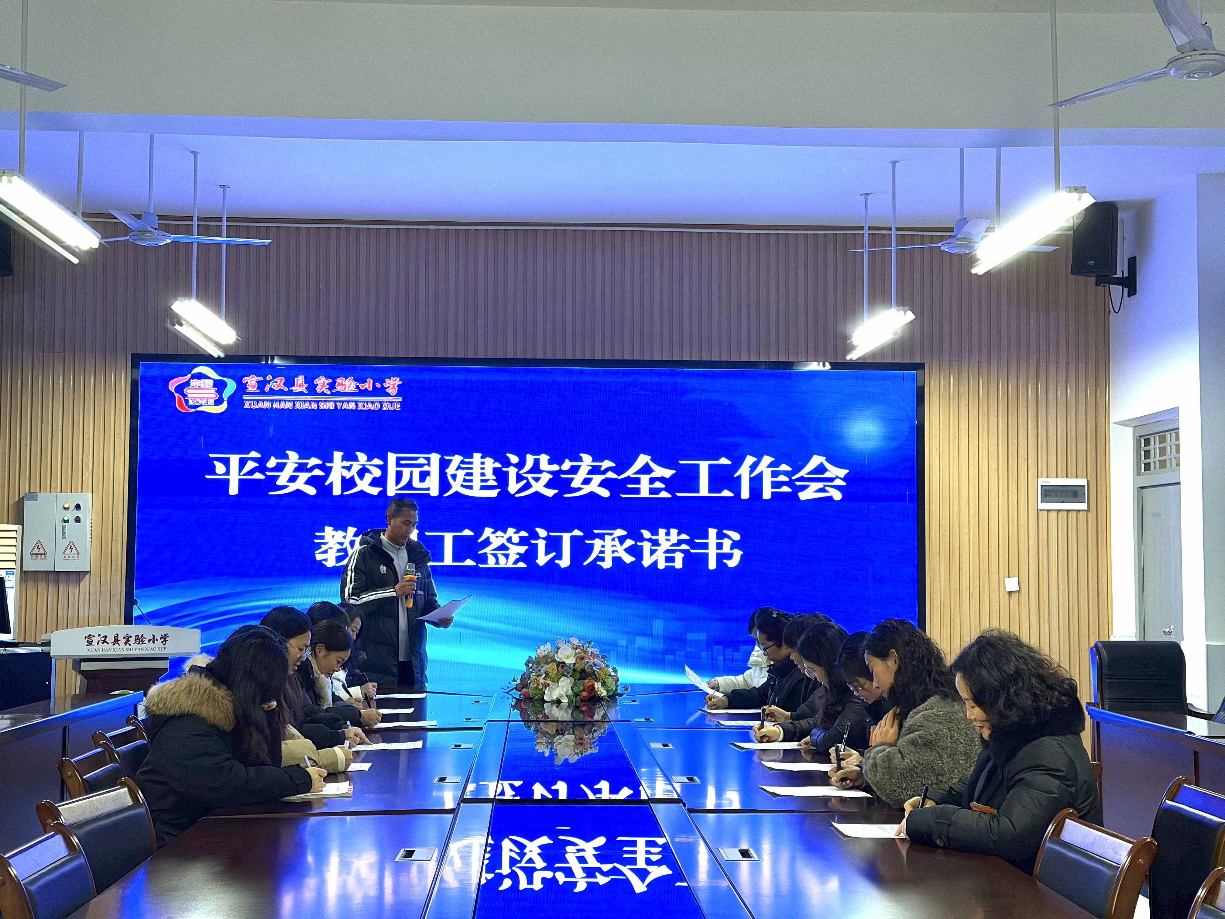 安全无小事,责任大于天,为了强化全校教职员工的安全责任意识,落实校园安全责任制。11月17日,宣汉县实验小学教职员工签订了平安校园建设安全承诺书,强化了教育者的责任担当。承诺书明确教师在课堂教学、日常管理、应急处置等方面的安全职责,要求教师落实“谁上课谁负责”原则,主动排查教学环境隐患,关注特殊学生安全需求,做好家校安全沟通衔接。全体教师郑重签字并作出公开承诺,将安全责任融入教育教学全过程,以实际行动守护学生健康成长。