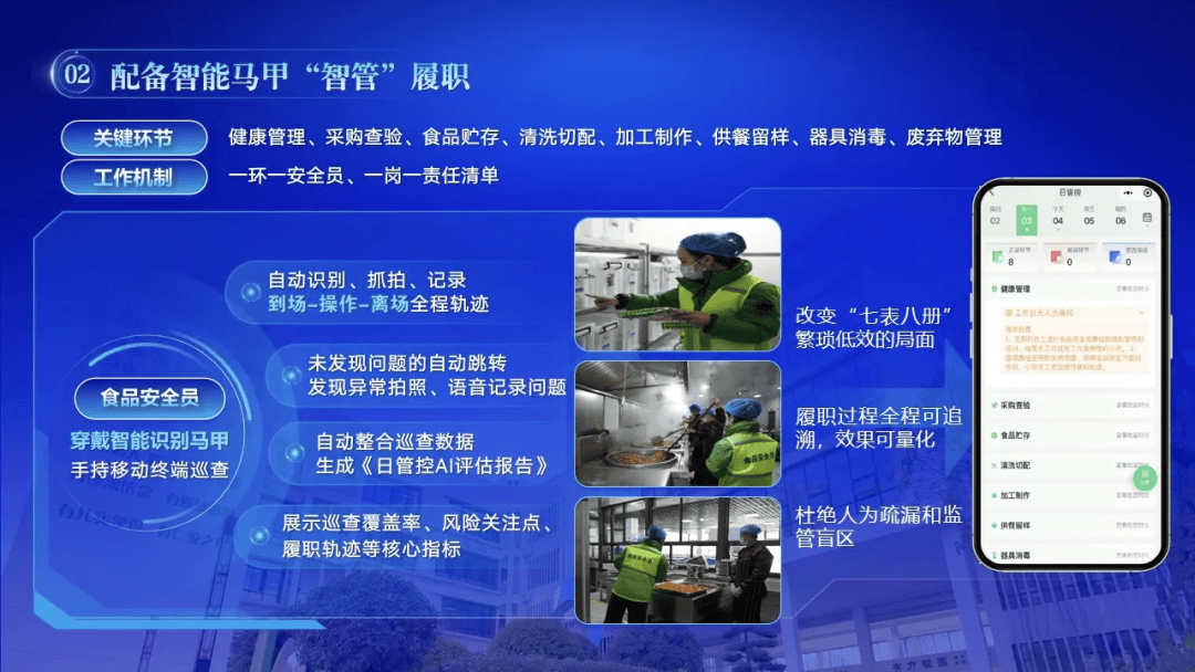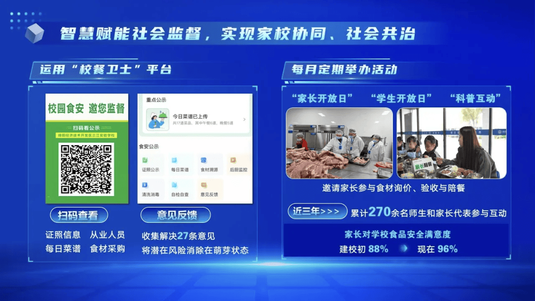 学校全面升级“校餐卫士”管理平台,用科技为食品安全筑牢铜墙铁壁,让关爱融入每一个细节。从智能验收、农残快检到AI巡检、智慧留样,全流程、全方位的智慧监管体系,确保每一份餐食都安全、营养、可口,真正做到让家长放心、让师生满意。