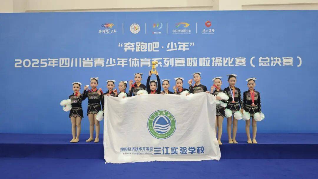 “奔跑吧·少年”2025年四川省青少年体育系列赛啦啦操比赛(总决赛),绵阳经开区三江实验学校江畔精灵啦啦队在彭雷、张立阳老师的带领下,凭借饱满的热情、整齐划一的动作与极具感染力的表现,荣获赛事最高奖一等奖。