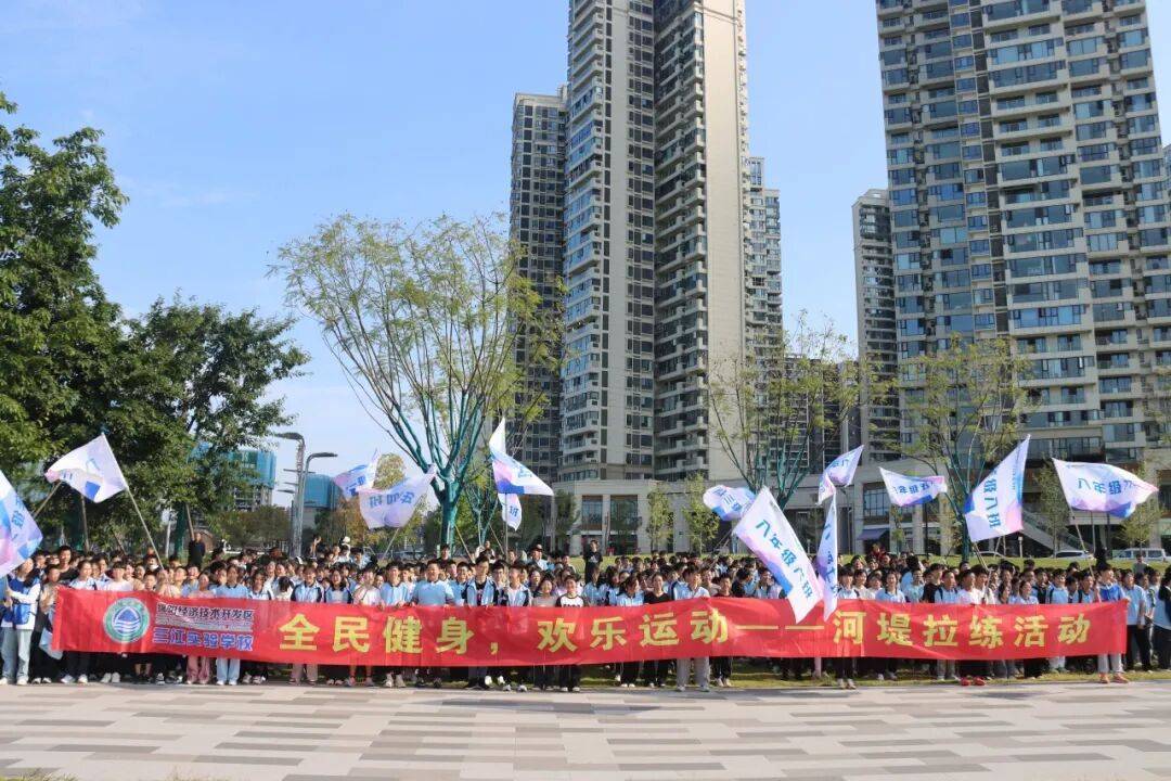 “迷你马拉松”——10公里三江河堤拉练,是一场行走的思政课,更是一次意志的磨砺与精神的洗礼。三江少年用双脚丈量从三江大桥到体育公园的路程,将河堤风光与成长感悟尽收眼底。路上,红歌对唱是流动的家国情怀教育,每一句旋律都传递着对祖国的热爱;拾荒行动是无声的环保宣言,每一次弯腰都彰显着责任担当。家校同行、师长守护,让“坚持”不再是空洞的口号,而是浸透校服的汗水与勋章。这场行走的课堂,磨砺了学生的意志品质,让协作、坚持、奉献的精神在实践中扎根,成为德育工作的经典品牌。