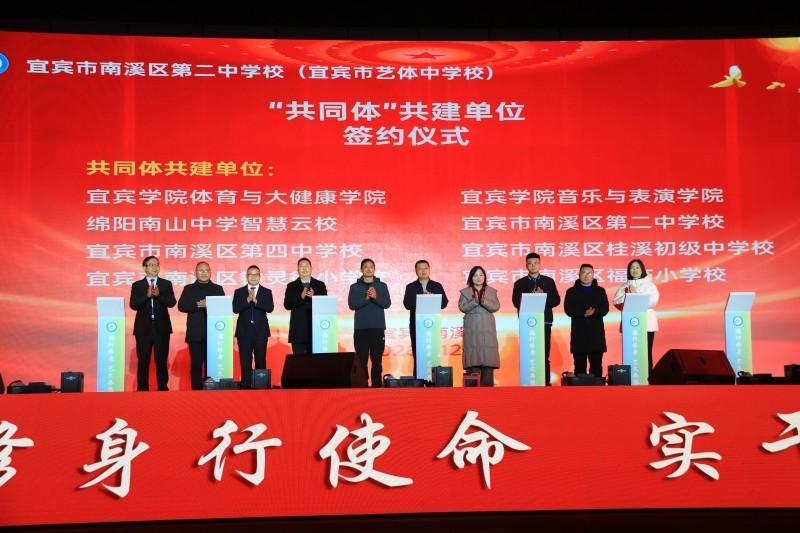 随后进行的“共同体”签约,汇聚了宜宾学院体育与大健康学院、宜宾学院音乐与表演学院、绵阳南山中学智慧云校、南溪二中、南溪四中、桂溪初中、钟灵街小学、福临小学等8家单位,为实现学段衔接、资源共享和人才贯通大中小一体化培养奠定了坚实基础。