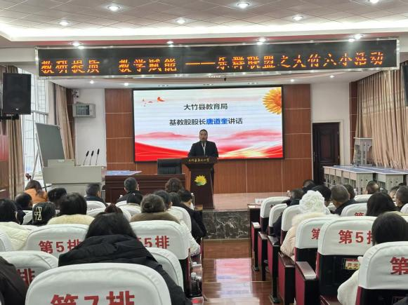 大竹县教育局基教股股长唐道奎出席并讲话,指出课堂教学提质增效是当前教育关键抓手,希望送教团队发挥“传帮带”作用分享教学智慧,要求参会教师珍惜机会、对标先进、反思提升。