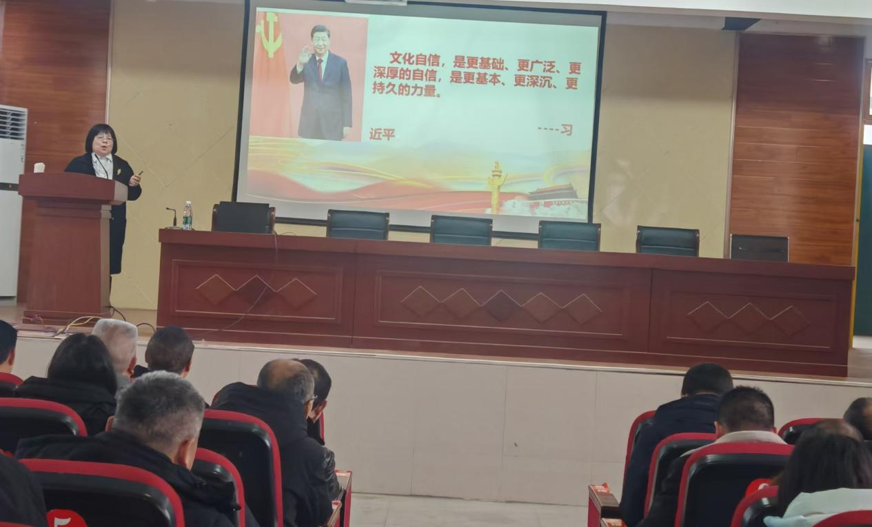 10时30分,感恩楼四楼阶梯教室掌声不绝,大竹县第二中学党委副书记、党员名师工作室主持人高定琼带来《坚定文化自信,担当历史使命》主题讲座。高老师旁征博引,从“腹有诗书气自华”的文化底蕴,到“为往圣继绝学”的使命担当,深入浅出阐释文化传承与教学实践的融合之道,为在场教师点亮了“立德树人”的前行灯塔。
