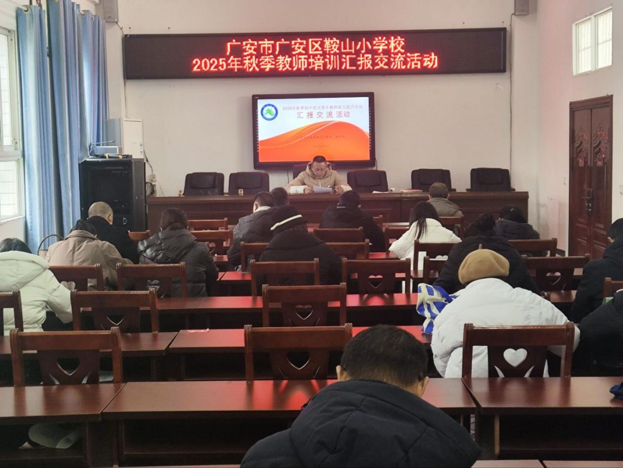 为践行新课标理念,增强教师教学水平,推动教育教学质量高效提升,2026年1月5日,广安市广安区鞍山小学校举办了一场主题突出、内容多样的校本研修活动。活动中,蒋万军、唐协兵、张晓萍三位教师结合近期参与的专项培训,交流学习心得与实践构想,为全校教师呈现了一场理论深刻且实践意义显著的教学盛宴。此次研修活动围绕“新课标实施”与“教学水平提高”两大重点展开,三位教师分别从各自学科角度进行分享。