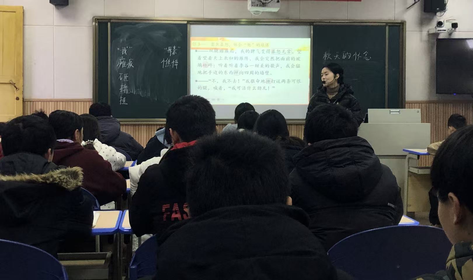 活动中,工作室结对培养青年教师、初中语文备课组长熊婷婷呈现示范课《菊香凝爱,映见生命微光——〈秋天的怀念〉》。