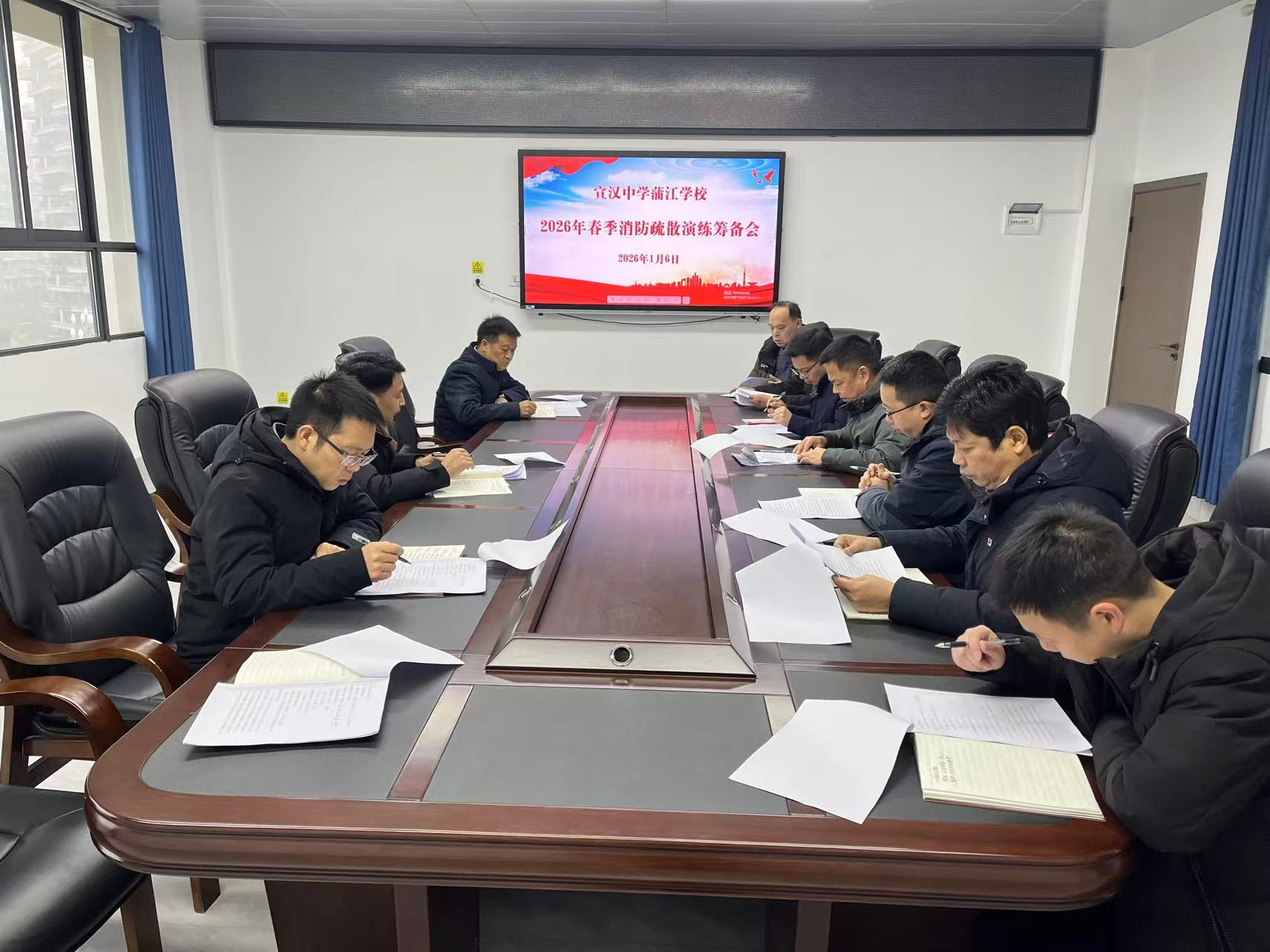 为确保演练顺利进行并达成预期目标,学校成立了以校长杨厚春为组长、各部门负责人为成员的演练指挥部。1月6日,学校召开消防演练筹备会议,明确各岗位职责分工,详细说明疏散路线、演练流程及关键注意事项,为演练顺利实施奠定了坚实基础。