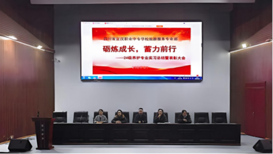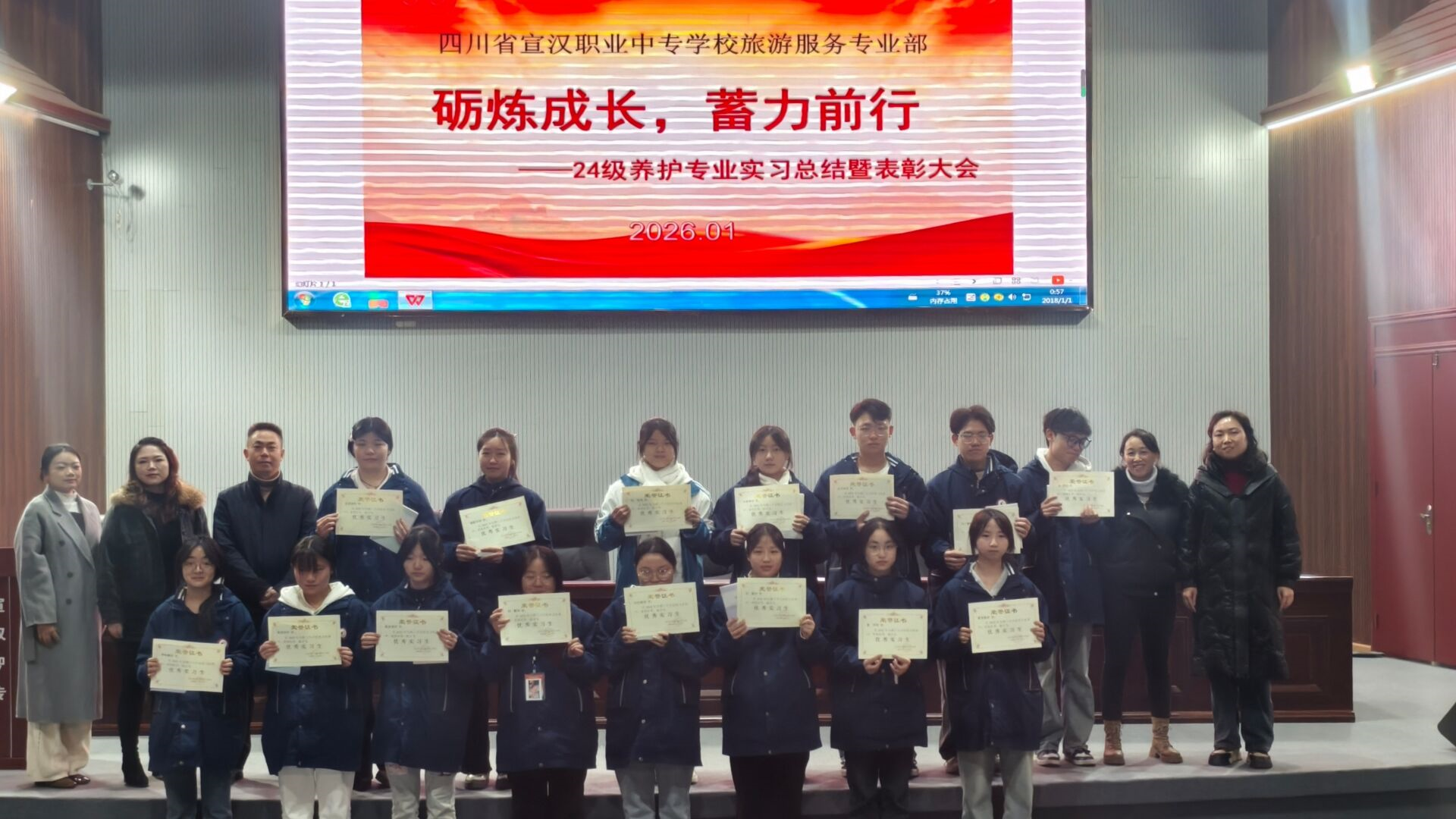 2026年1月7日上午,宣汉职专旅游服务专业部在校学术报告厅举行“砺炼成长,蓄力前行——24级养护专业实习总结暨表彰大会”。学校党委委员、纪委书记李建军,专业部管理团队,该专业全体班主任、任课教师及学生参会。会议由旅游服务党支部书记秦灵祝主持。