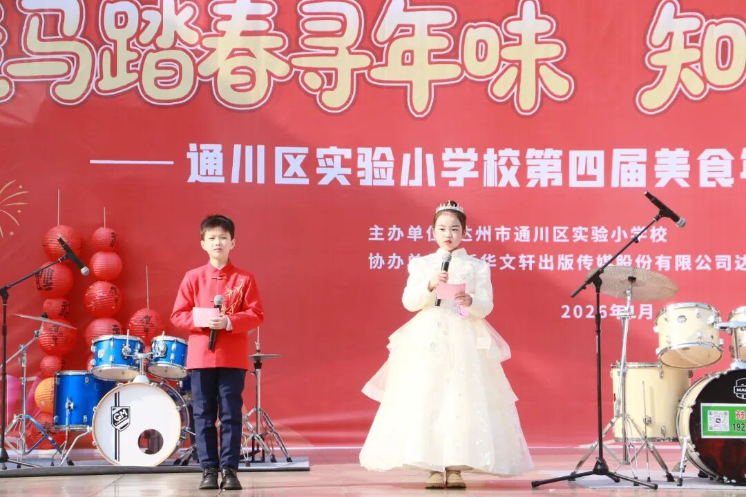 学校党总支书记马钧携诗送福,以“骁腾有如此,万里可横行”的龙马风骨寄望学子。诗承马韵,启幕芳华,他高声宣布:“通川区实验小学校第四届迎新春创意年货节,正式开幕!”