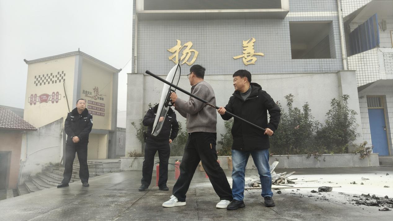 演练前,学校安办制定详细应急预案,明确组织架构与职责分工,各班通过主题班会开展前置安全教育,讲解避震、消防、防暴核心知识与疏散注意事项。同时,邀请派出所民警开展专项培训,针对灭火器、防暴盾牌、橡胶棍等应急器材的规范使用,以及防御站位、团队协同等实战技巧进行手把手指导,确保参演人员熟练掌握操作要领,为演练顺利开展奠定坚实基础。