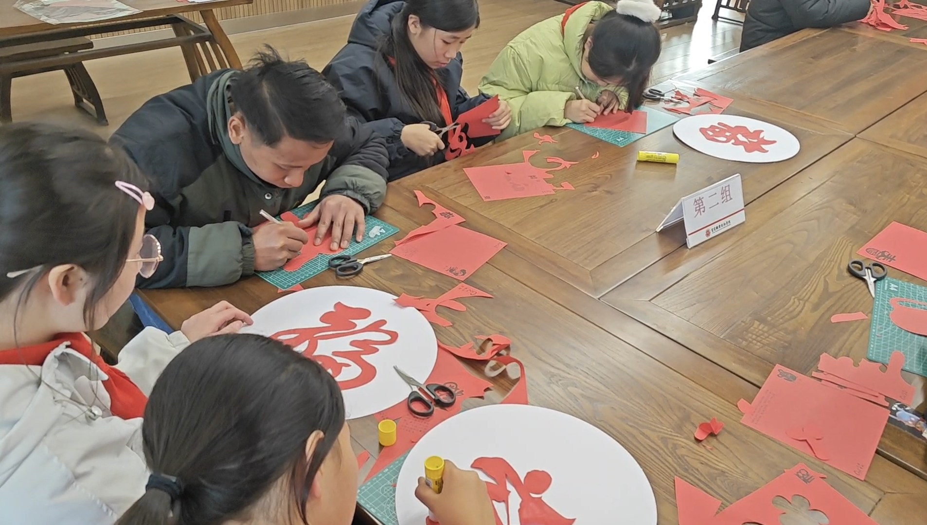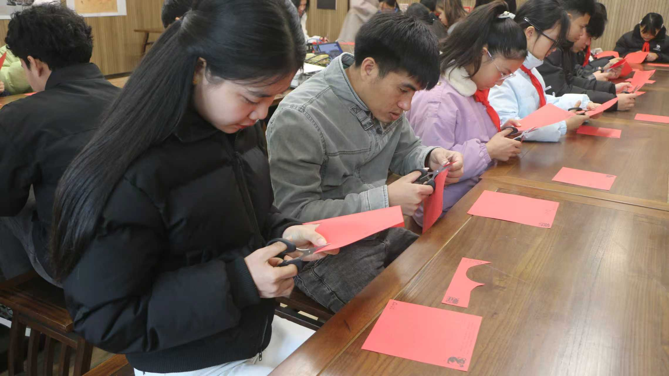 剪纸体验环节将活动推向高潮。桂溪学子与宜职院留学生混合分组,在老师指导下剪窗花、制福字,将美好祝愿融入指尖创作,并通过直播向老挝学子展示剪纸魅力,让中老文化在创作分享中深度交融。