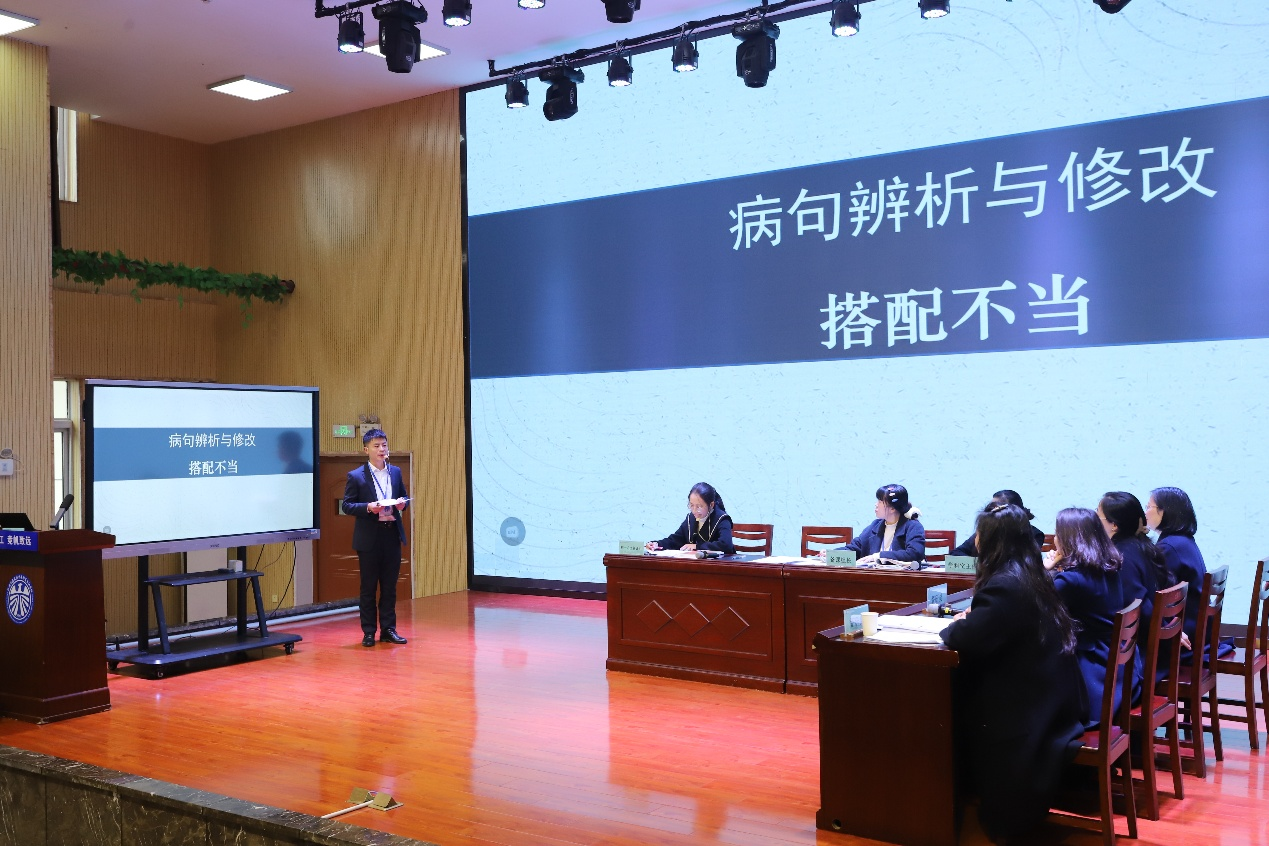 在多功能厅,七年级语文备课组正在开展“语病攻坚”主题教研。备课组基于“三情分析”精准诊断学情,通过课例研磨与集体共研,构建出“辨析—修正—建构”的教学闭环,并最终凝练为《七年级语病复习攻坚手册》。