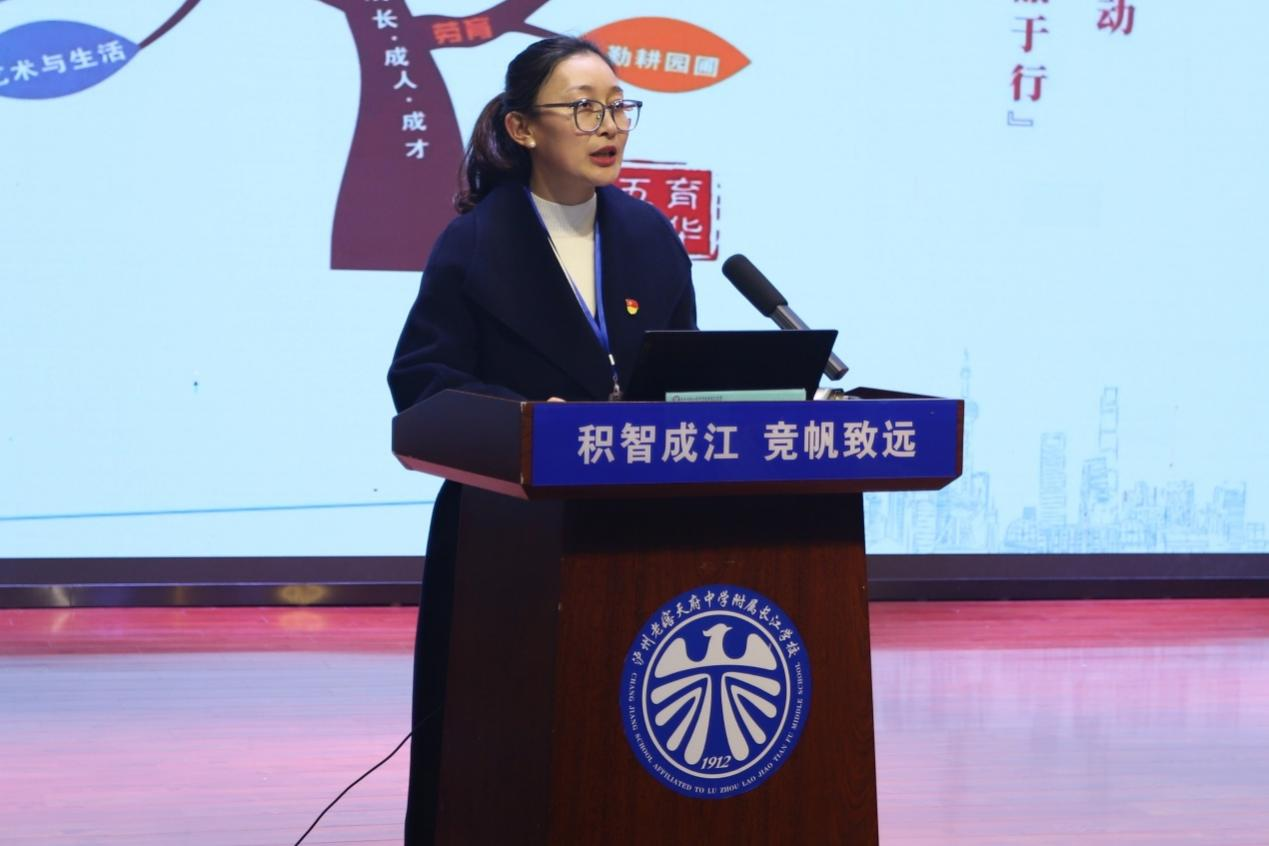 在随后的专题报告环节,学校德育处主任周颖作了题为《从“三线精神”到品格塑造——在“大思政”格局下的德育精细化管理》的报告。她系统阐述了学校如何依托红色校史资源,将“三线精神”融入德育体系,构建“三阶六品”品格培养路径与“五育融合”实施机制,从而推动爱国主义教育与日常品格养成深度融合。
