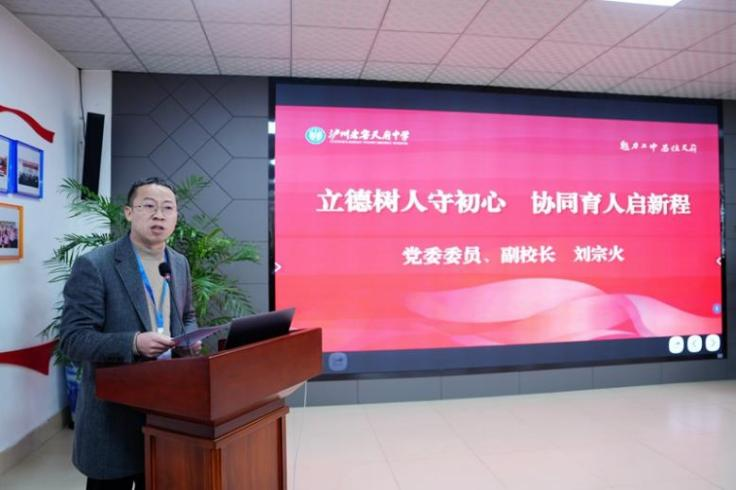 泸州老窖天府中学党委委员、副校长刘宗火以《立德树人守初心 协同育人启新程》为题发言。