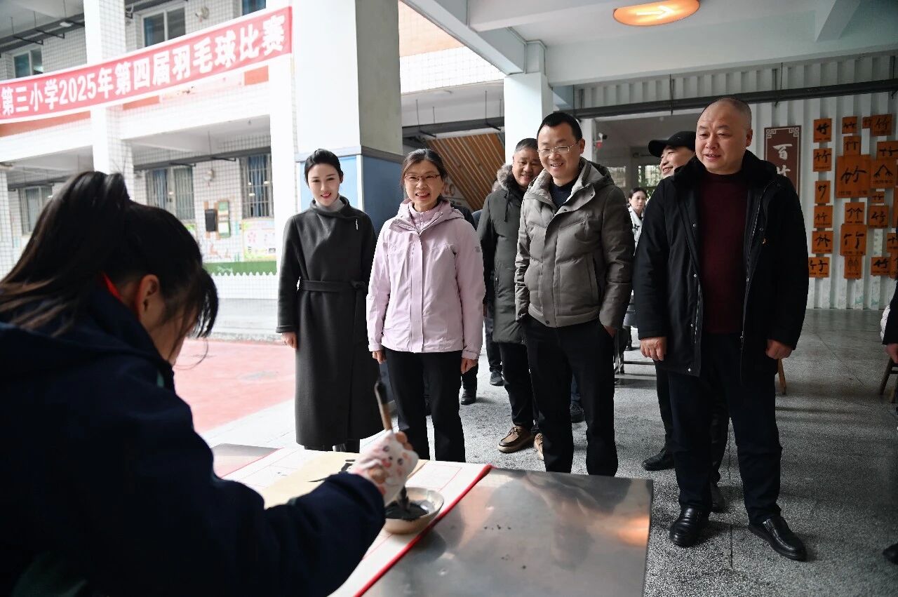此次调研为大竹县基础教育高质量发展指明了攻坚方向,提供了政策指引与实践指导。大竹县第三小学将以此次调研为契机,进一步深化教育质量提升、资源共享机制建设、信息化赋能教学等核心议题探索,奋力书写大竹县第三小学高质量发展新篇章。(文稿:刘彪)