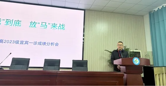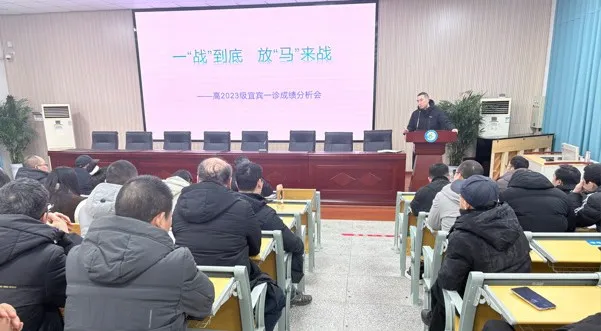 为精准把脉学情,优化复习策略,全力护航2026年高考备考工作,1月23日,南溪二中高2023级宜宾“一诊”考试成绩分析会在学校大会议室召开。副校长李勇主持,全体高三教师参会。