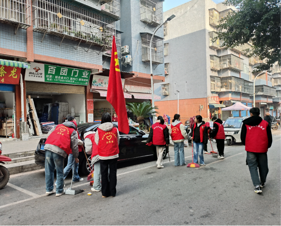 活动当天,学生会全体成员精神饱满、斗志昂扬,高举鲜艳的团旗,统一身着红色志愿者背心,有序前往锦屏镇社区街道集合。在芶光春的统筹安排和详细分工下,同学们迅速投入到公益劳动中,大家分工明确、配合默契,形成了一股热火朝天的劳动热潮。有的同学手持扫帚、簸箕,认真清扫街道路面的落叶、纸屑、塑料袋等生活垃圾,不放过任何一个卫生死角;有的同学弯腰捡拾草丛中的杂物,清理墙角、电线杆旁的顽固垃圾和小广告;还有的同学主动整理街道旁的杂物,协助清理乱堆乱放的物品,全力改善社区街道环境面貌。