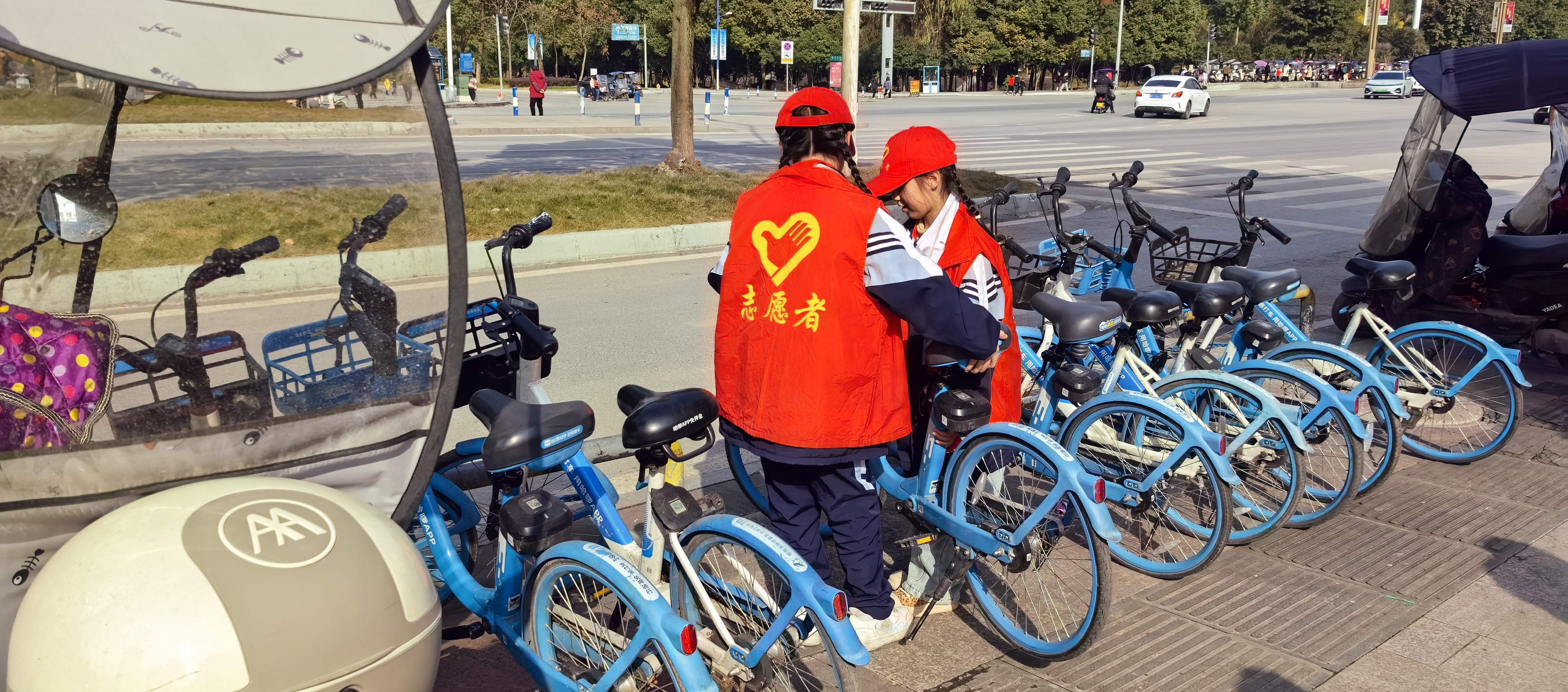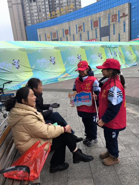 冬日的广场上,“红领巾”们忙碌的身影成为最活力的风景。