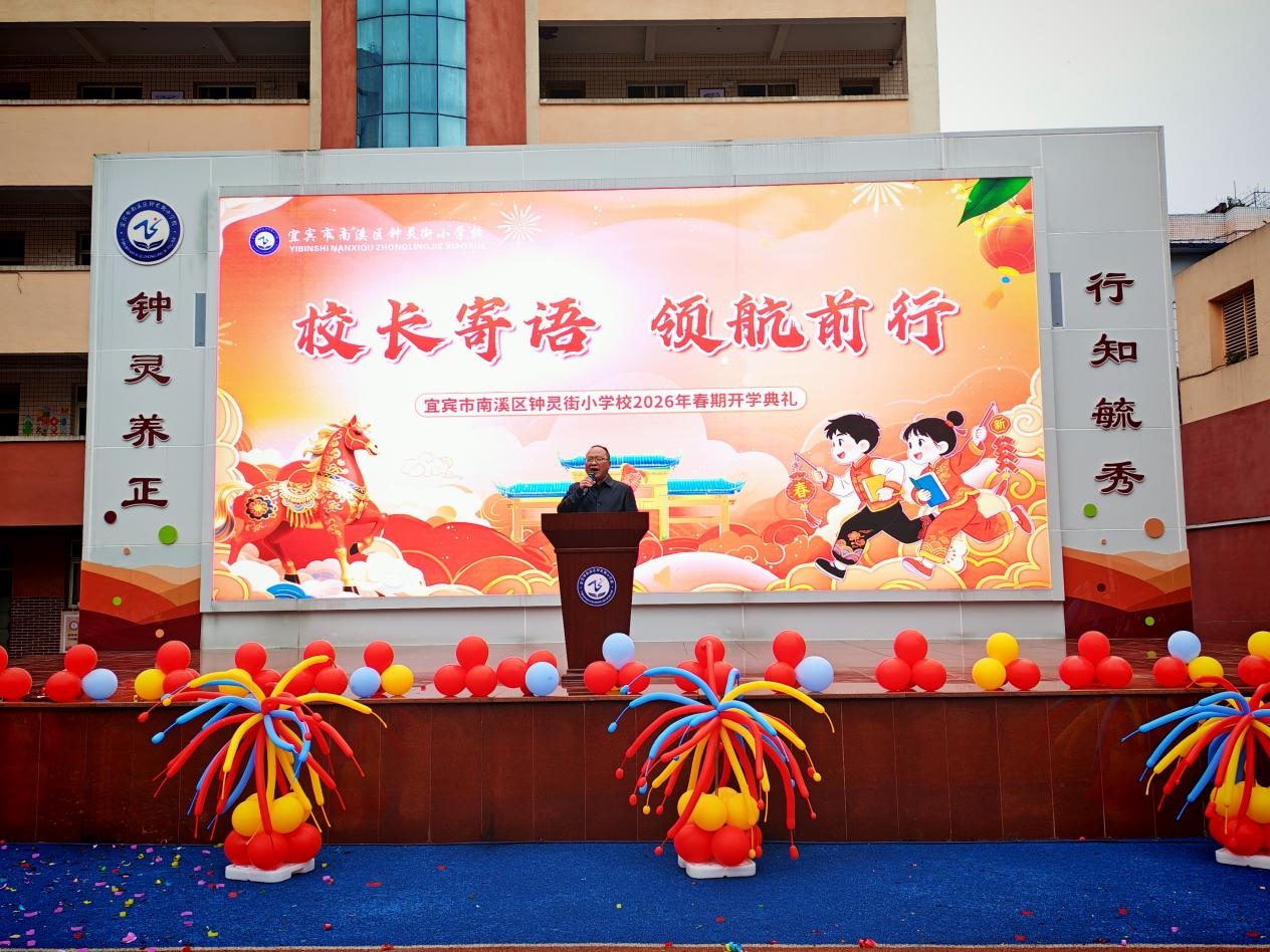 春风启新程,奋进正当时。为明确新学期奋斗目标,凝聚师生奋进力量,营造浓厚开学氛围,3月2日下午,宜宾市南溪区钟灵街小学校举行以“马跃钟灵承初心 行知养正育芳华”为主题的2026年春期开学典礼。全体师生齐聚校园,共启新学期新征程。