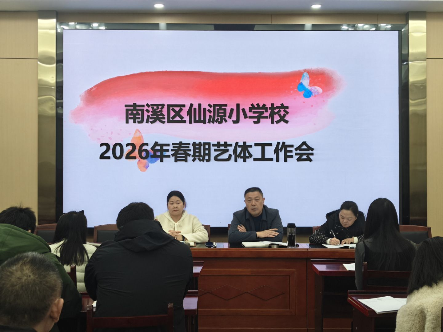 为进一步提升学校艺体工作规范化管理水平,彰显办学特色,扎实推进“五育并举”落地见效,促进学生全面发展,3月3日上午,南溪区仙源小学在二楼会议室召开2026年春期艺体工作会,全体艺体学科教师参加会议。