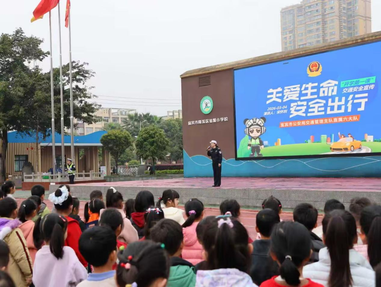 为进一步提升学生的交通安全意识和自我保护能力,筑牢校园交通安全防线,3月4日,宜宾市公安局交通管理支队直属六大队的警官们走进南溪区仙源小学,开展了一场以“关爱生命,安全出行”为主题的交通安全宣传教育活动,为孩子们带来了生动的“开学第一课”。