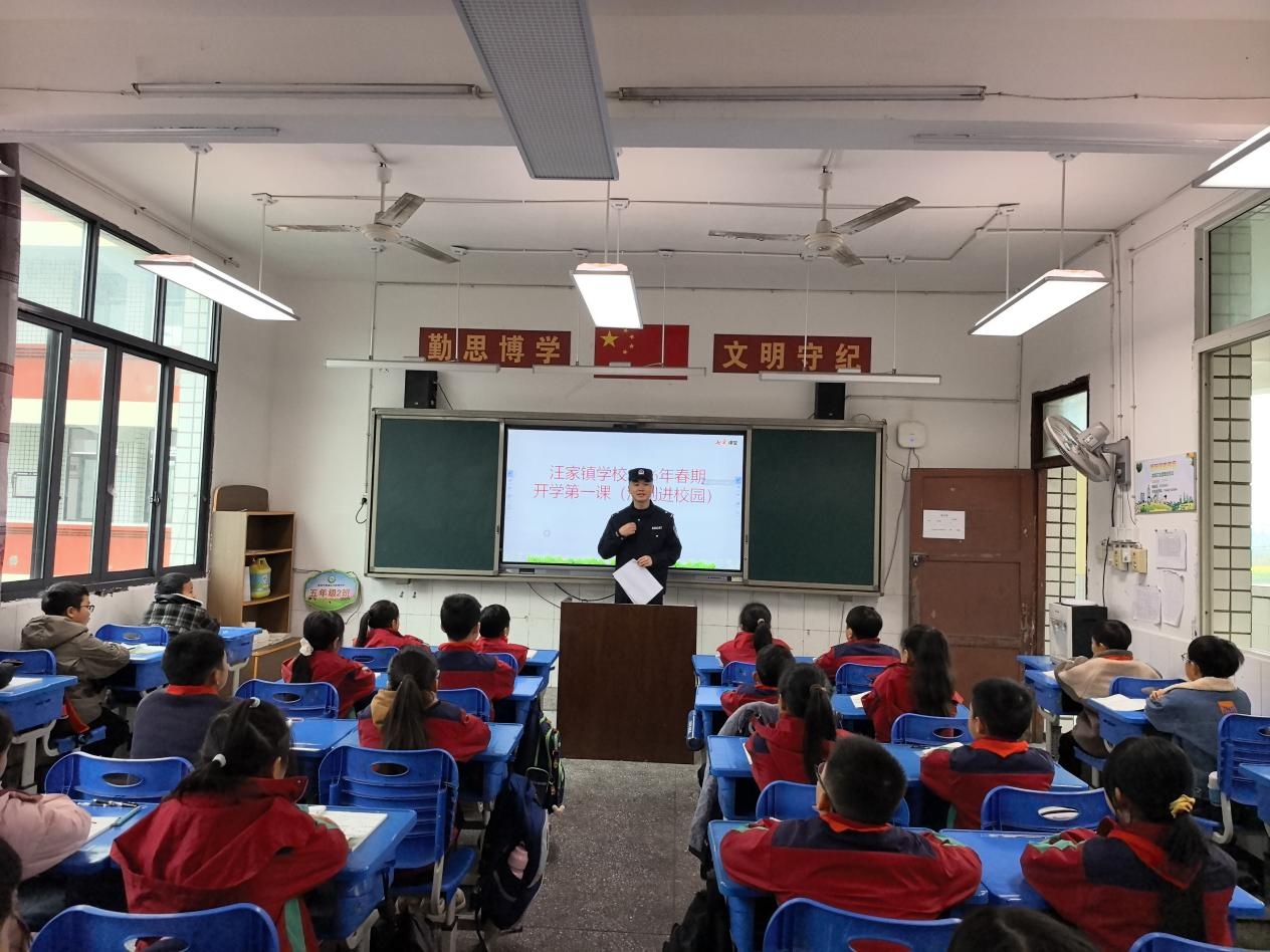 为了进一步加强学生的法律意识和法制安全教育,有效防范电信诈骗、校园欺凌、用火用电和普及道路交通安全知识。近日,汪家镇派出所李杰警官来到汪家镇学校开展“开学第一课 法制进校园”活动。