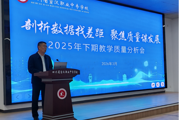 3月5日下午,宣汉职专召开2025年下期教学质量分析会。本次会议以“剖析数据找差距、聚焦质量谋发展”为主题,深入贯彻“质量强校”发展战略,始终坚守“以教学为中心”的核心定位,全面复盘学期教学工作,精准查摆短板弱项,系统部署提质举措,凝心聚力办好人民满意的现代职业教育。学校领导班子、各处室负责人及各专业部全体管理干部参加会议,共商教学质量提升与学校高质量发展良策。