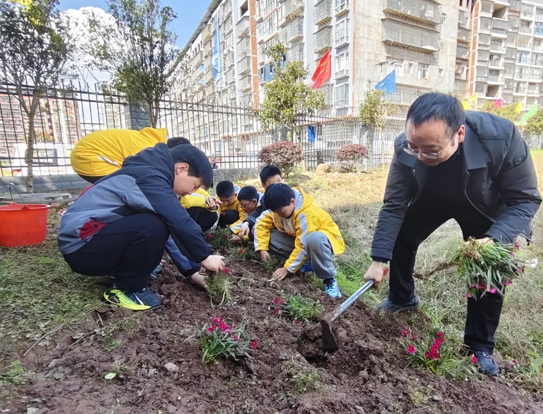 活动伊始,老师们通过主题班会向同学们普及了植树节的由来、植树造林的重要意义,还细致讲解了栽花、植树的正确方法——如何扶正花苗、深浅适宜地栽种,如何挥锹填土、踩实土壤,如何科学浇水、呵护幼苗,让同学们在实践前掌握了实用的小技巧。
