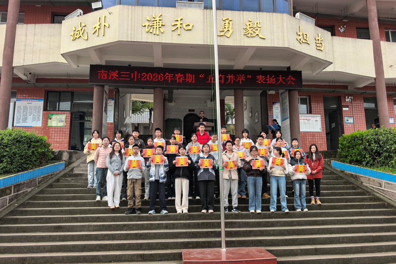 春风拂校园,榜样耀芳华。3月11日大课间,南溪三中全体师生齐聚操场,举行2026年春期“五育之星”表扬大会。