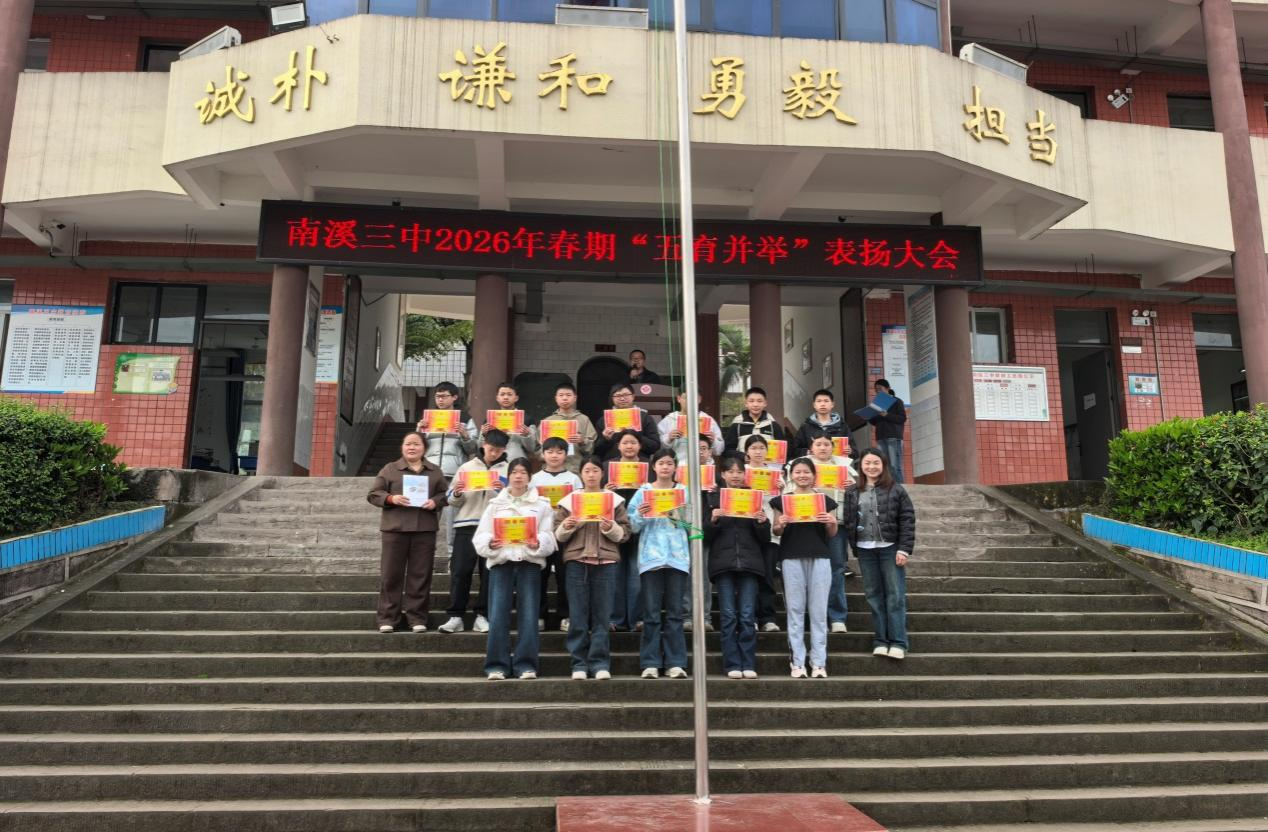 此次表扬大会既是对优秀学子的肯定与嘉奖,更是南溪三中深耕“五育并举”、践行立德树人根本任务的生动实践。榜样的力量催人奋进,相信全体三中学子必将以获奖同学为标杆,在德智体美劳全面发展的道路上勇毅前行,用汗水浇灌梦想,用拼搏书写青春华章。(王雪润)