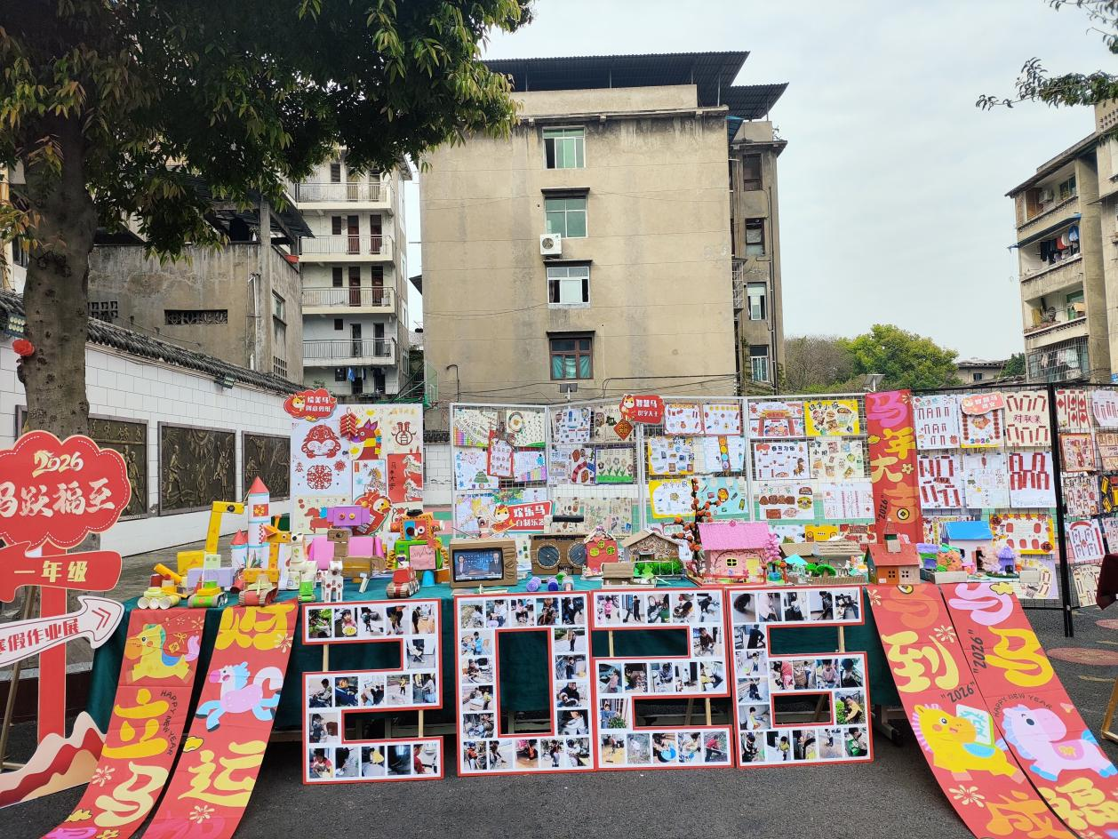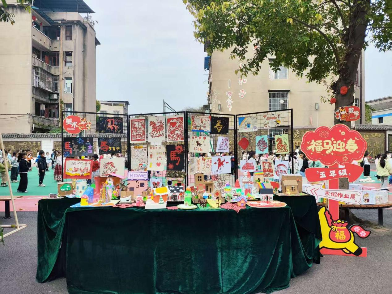 本次寒假作业紧扣马年新春主题,创新设置智慧马(语文)、逻辑马(数学)、力行马(德育)、欢乐马(音乐)、绘美马(美术)五大模块。各年级结合学段特点设计专属实践任务,让作业内容兼具趣味性与实效性、知识性与实践性。展览现场,各展区整齐有序、内容精彩纷呈,师生与家长代表纷纷驻足欣赏、交流点赞,校园里处处洋溢着收获与成长的喜悦。