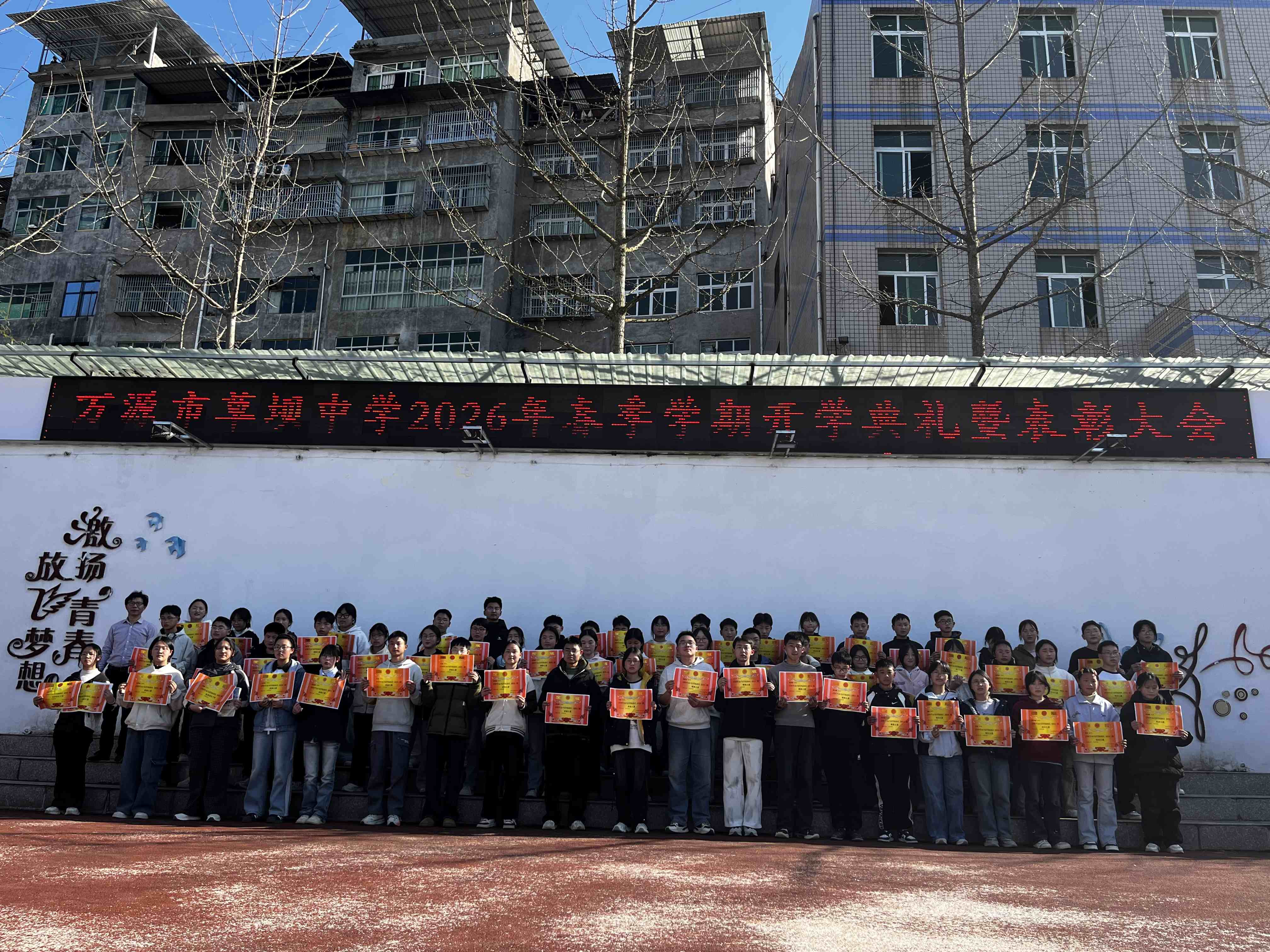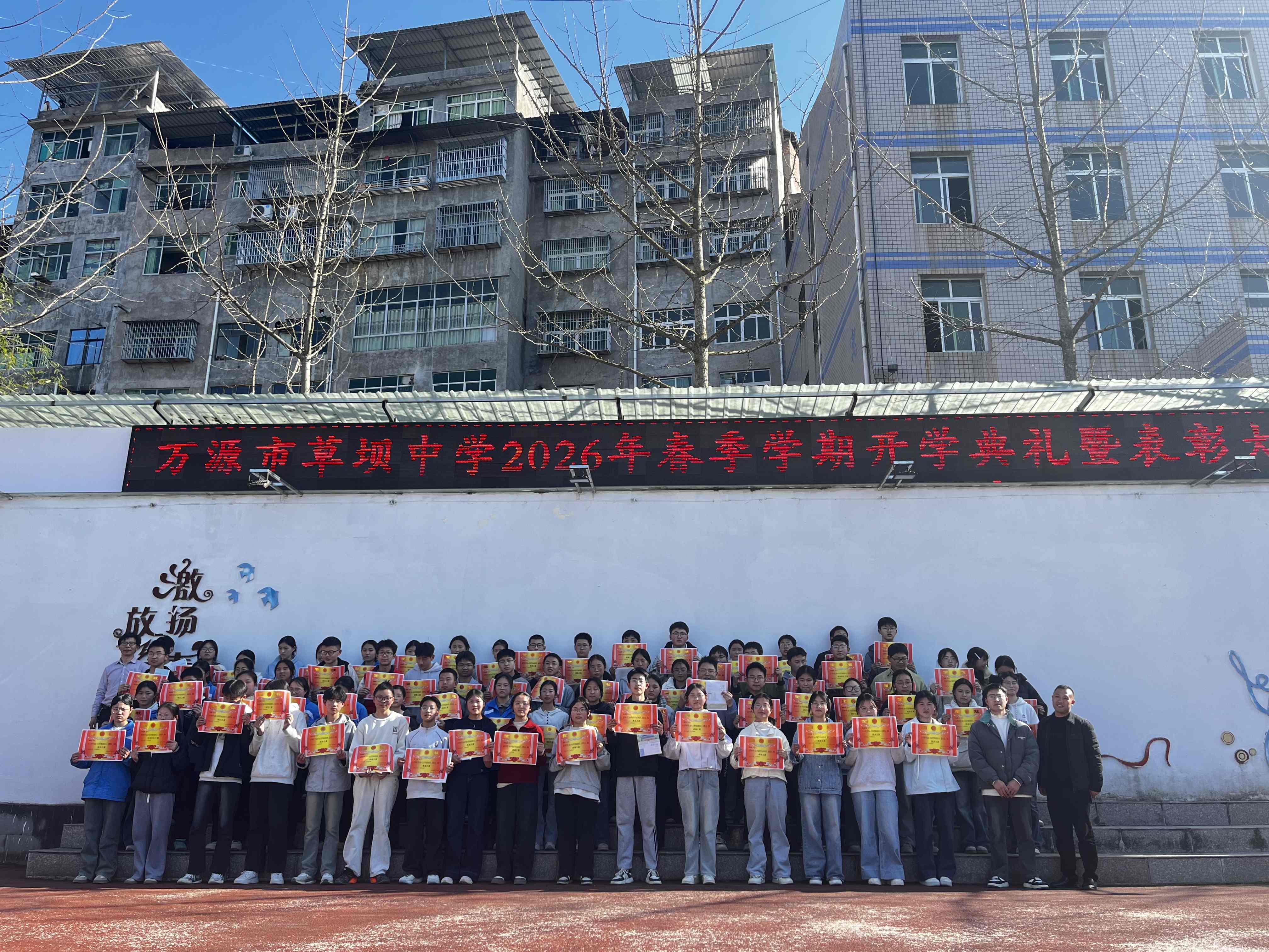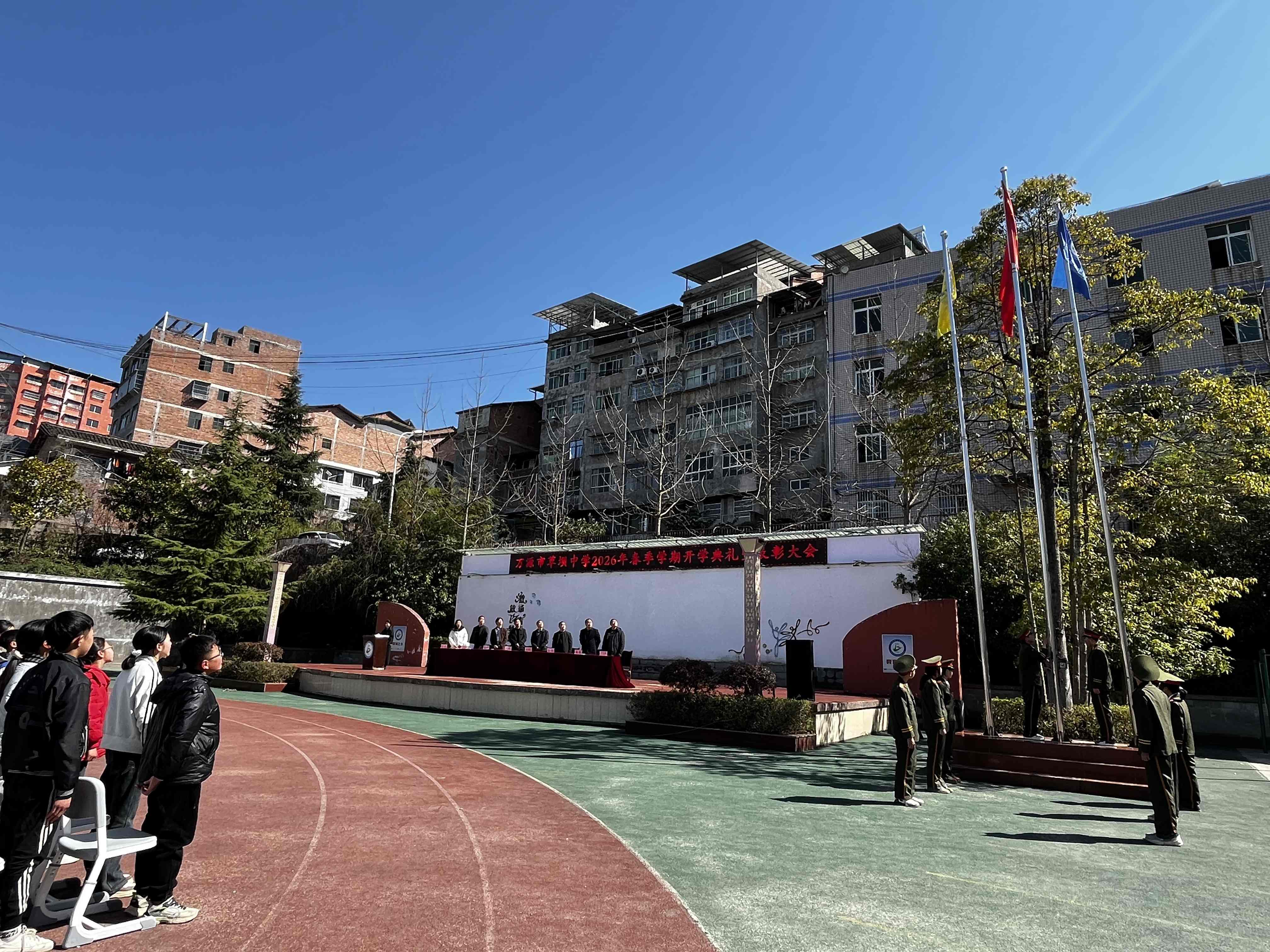 春风启新程 奋楫向未来——万源市草坝中学举行2026年春季学期开学典礼暨表彰大会