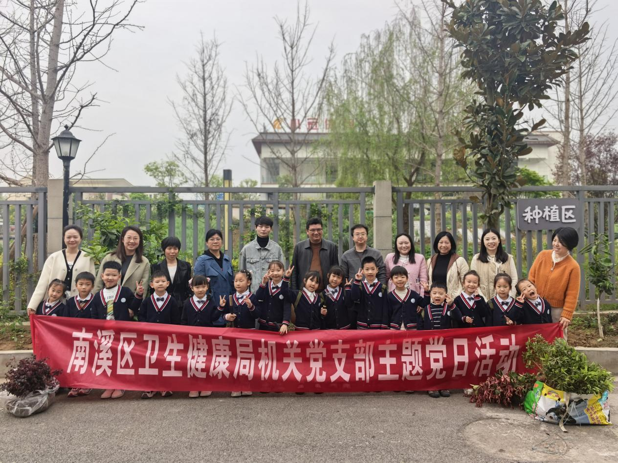 南溪区卫健局工作人员与师幼一同参加植树活动。大家扶苗、培土、浇水,用实际行动为校园增添新绿。大手牵小手,不仅种下一棵棵树苗,更将爱护环境、守护健康的理念传递给每一位孩子。