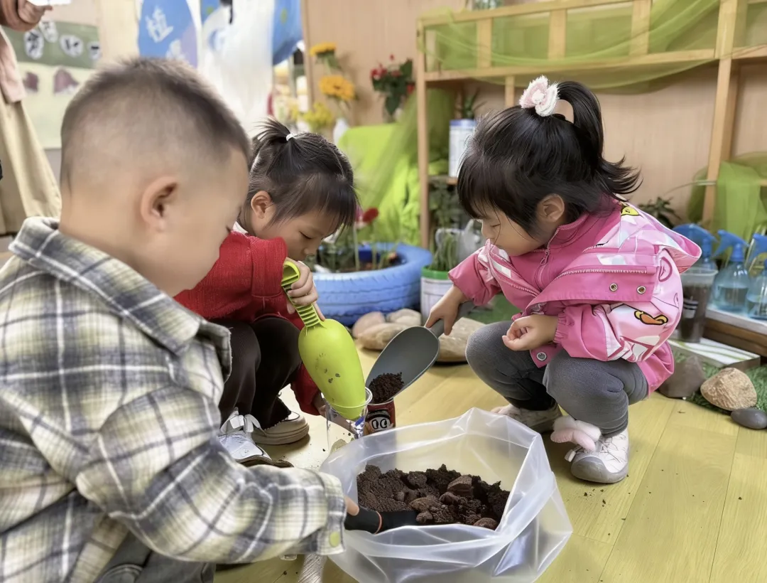 亲手播种,静待花开。中班以 "播种绿色 与自然共生长" 为主题,让幼儿化身 "小小园艺家",将劳育实践与美育创作深度结合,丰富保教活动形式。在党员教师的指导下,孩子们认真学习松土、栽种、浇水、养护的劳动技能,每一个动作都专注认真,在动手实践中锤炼劳动本领,培养吃苦耐劳、认真细致的劳动品质。