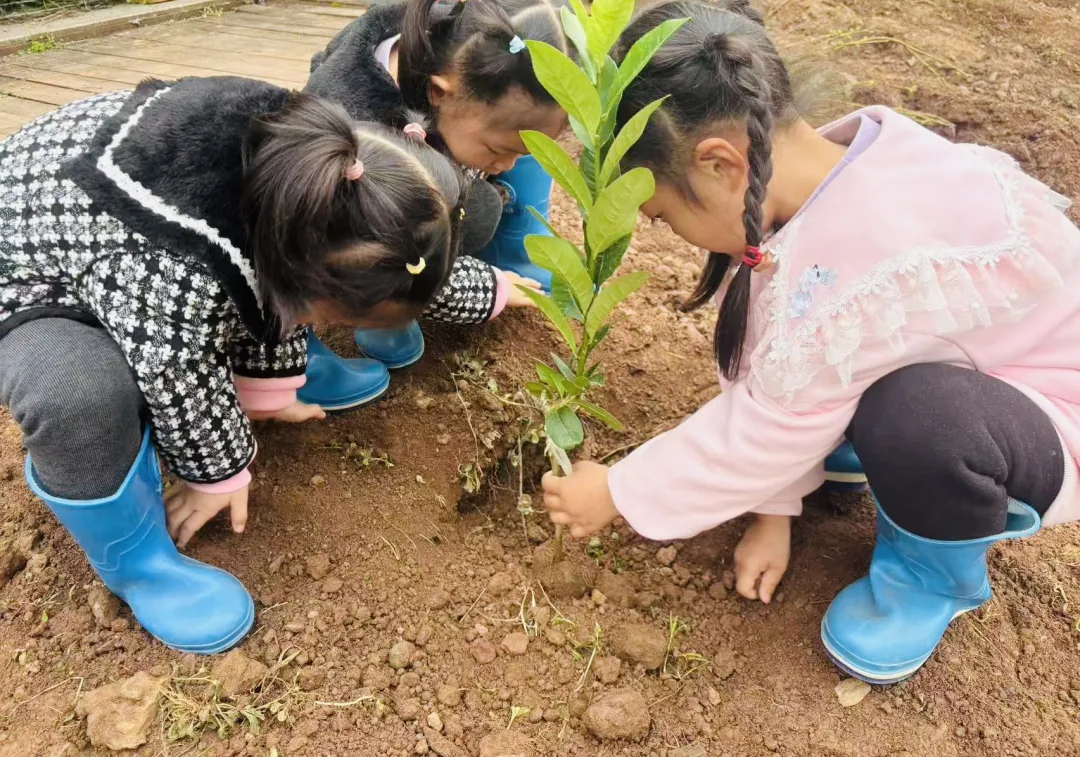 一草一木皆有生命,一枝一叶总系深情。石鼓幼儿园以党建为引领,将红色教育、生态教育、美育与劳育融为一体,党员教师示范引领,根据幼儿年龄特点开展植树实践。孩子们在松土、栽种、浇灌中亲近自然、感悟生命,既锻炼了劳动技能、提升审美素养,也增强了环保意识与责任感。幼儿园将以此为契机,持续把绿色教育、美劳教育融入保教日常,开展更多特色实践活动,让幼儿在绿意与初心陪伴下向阳成长,为德智体美劳全面发展打下坚实基础。(郑平)