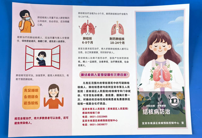 学校和卫生院精心准备了图文并茂的《结核病防治》宣传折页,详细解读了肺结核防治注意事项、通风与口罩佩戴图示,以及耐药与非耐药结核病的治疗周期。
