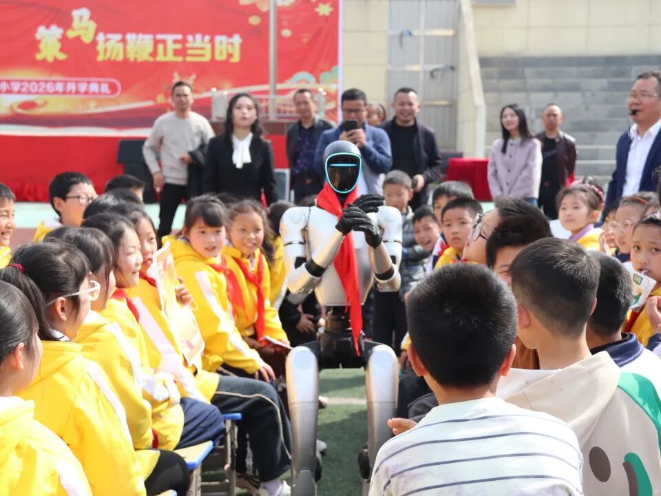 最令人期待的机器人表演环节闪亮登场!灵动的机器人带来酷炫舞蹈表演,机械臂随音乐精准律动,瞬间点燃全场热情。随后机器人与同学们亲密互动,握手、打招呼,让科技的种子在孩子们心中生根发芽,感受创新与未来的无限可能。
