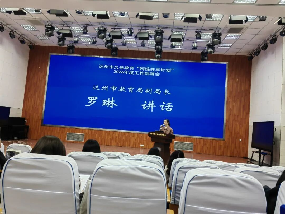 2026年3月16日,达州市教育局召开“网链共享计划”工作部署会。会上,市教育局副局长罗琳指出,要深刻认识该行动对推动达州基础教育城乡一体化、实现优质均衡发展的重要意义,珍惜来之不易的公益普惠机遇。要以点带面、精准发力,催生学校特色发展,赋能教师专业成长,让城乡师生在共享中真正“成长在一起”,推动达州基础教育内涵建设看得见、摸得着,切实办好人民满意的教育。