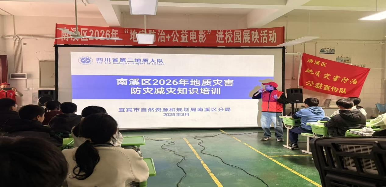 为深入落实地质灾害防治宣传工作要求,强化校园地质灾害防范意识,提升全体师生识灾、防灾、避灾和自救互救能力,筑牢平安校园防线,3月18日,宜宾市自然资源和规划局南溪分局工作人员走进南溪区仙源初级中学校,开展地灾防治+“公益电影”进校园及地质灾害防灾减灾知识培训活动,为全体师生送上一堂生动实用的“安全必修课”。