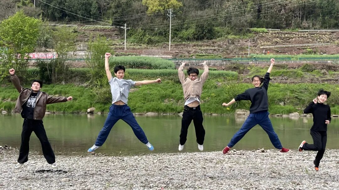 龙驹坝的春天,是多彩的,好似搭建了一块绝美的背景板。同学们摆上最靓的造型,在花海中穿梭,在河滩边跳跃。镜头定格下了他们专注的眼神、灿烂的笑容。这片三面环水、青山环抱的福地,不仅藏着大自然的鬼斧神工,更留下了同学们关于青春最滚烫的记忆。