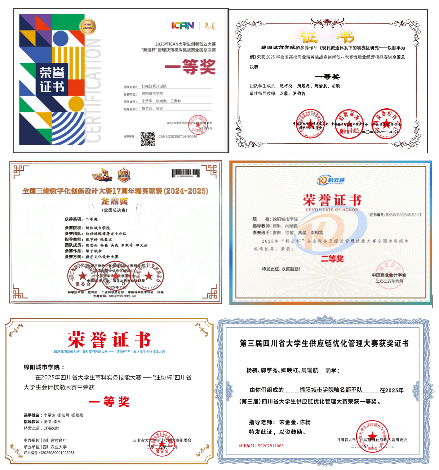 在持续扩大竞赛参与面的同时,学校在重点赛事中的突破能力也不断增强。2025年,绵阳城市学院学子在全国大学生嵌入式芯片与系统设计竞赛、全国数字建筑创新应用大赛、两岸新锐设计竞赛・华灿奖、中国高校智能机器人创意大赛等多项国家级赛事中屡获佳绩,斩获多个国家级奖项。其中,在中国高校智能机器人创意大赛中,更是实现了首次参赛即获奖的新突破。